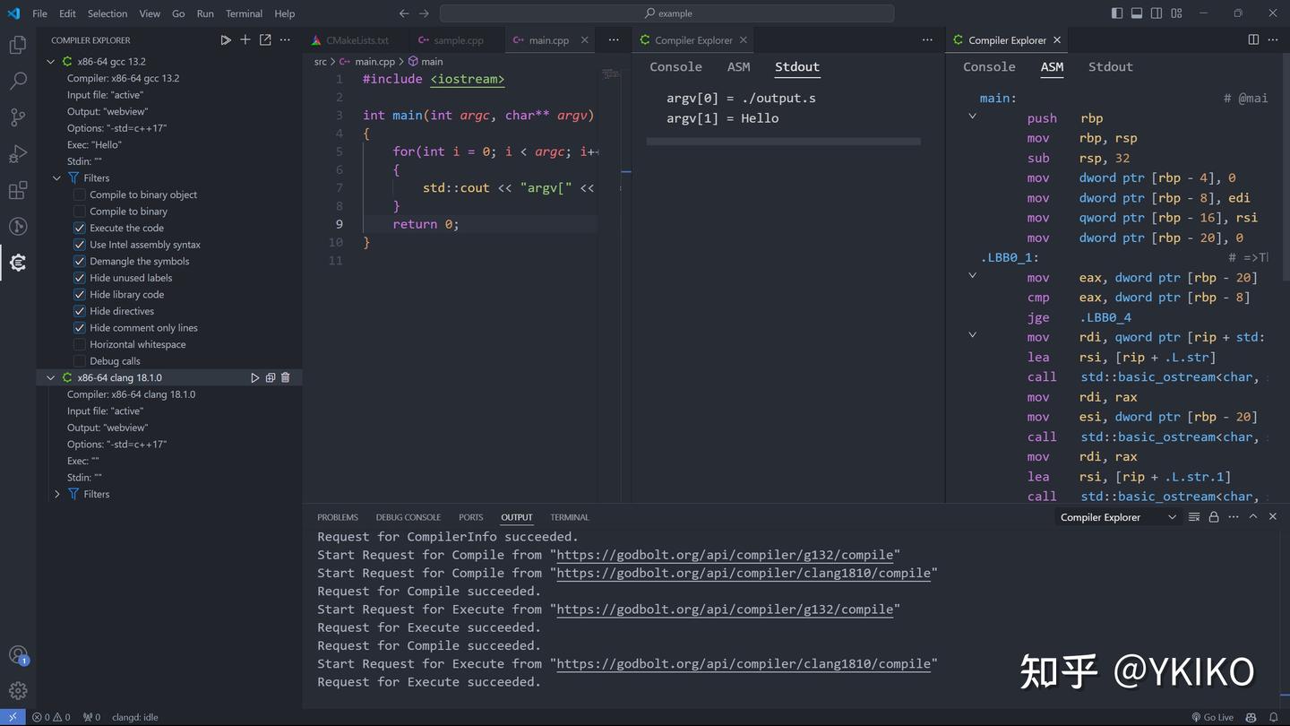 Compiler Explorer 是一个非常流行的 C++ 在线编译器,可用于测试不同的编译执行环境,或者分享代码。作为一个 C++ 爱好者,我几乎每天都要和它打交道,使用频率之高远超我的想象。同时,我也是一个重度 VSCode 用户,几乎所有的事情都在 VSCode 中完成。考虑到经常在本地写代码然后拷贝到 Compiler Explorer 上去,总觉得不太舒服,有时候直接就在它的网页编辑器上改了,但是又没有代码补全,也不舒服。所以我和 @iiirhe 合作编写了这个插件 Compiler Explorer for VSCode,基于 Compiler Explorer 提供的 API 将 Compiler Explorer 集成到 VSCode 中,使得用户可以在 VSCode 中直接使用 Compiler Explorer 的功能。